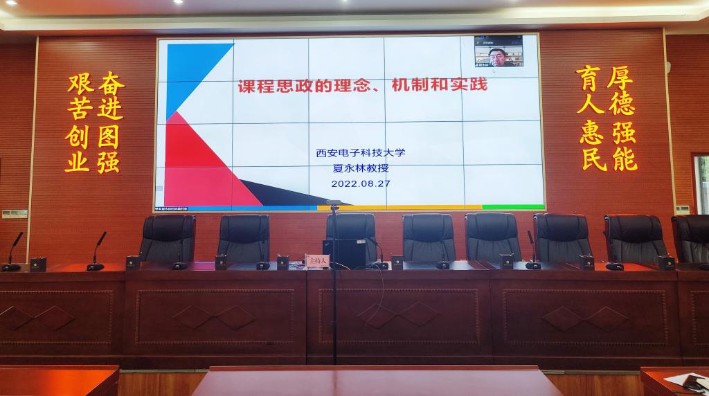8月28日下午,咸阳职院召开暑期教师培训会,会议邀请西安电子科技大学马克思主义学院夏永林教授作专题报告。副院长杨新宇、各二级学院院长、副院长及学院全体专兼职教师以线上和线下方式参加培训。培训会由教务处处长冯华主持。