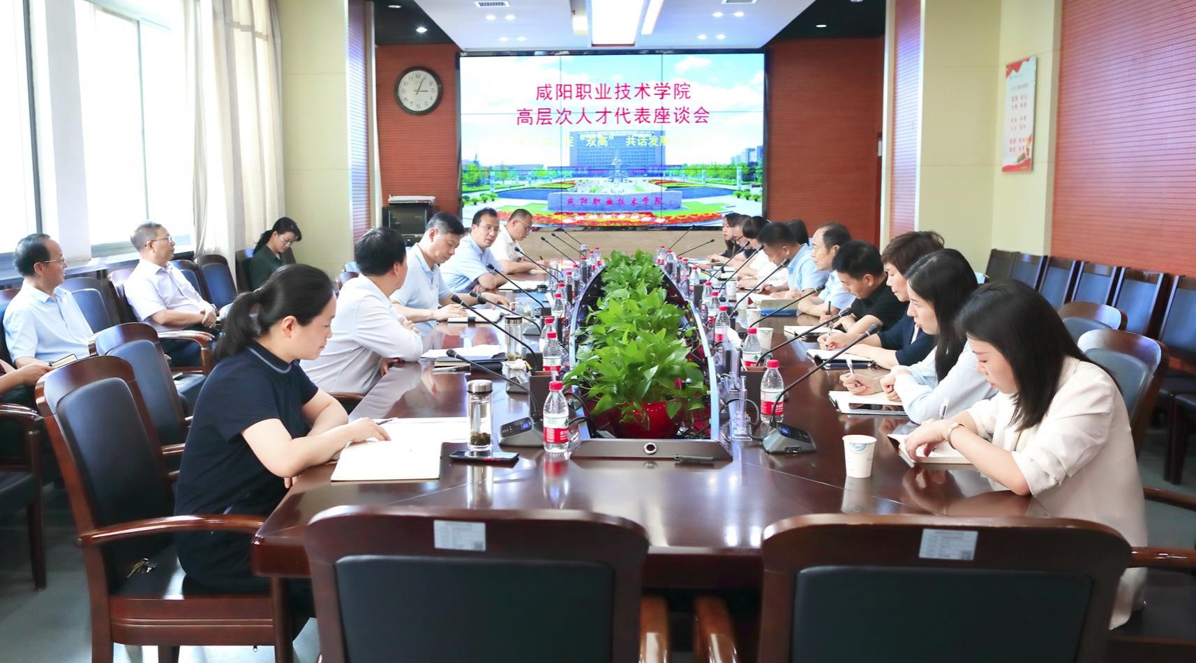 9月7日,在第38个教师节来临之际,咸阳职院召开以“聚力凝心促‘双高’ 共话发展绘蓝图”为主题的高层次人才座谈会。学院领导张迪、杨卫军、席尚君、杨新宇、吴旭锦出席,来自各二级学院的10位高层次人才代表及学院党政办公室、组织人事处、教务处、科研处负责人参加。座谈会由学院党委副书记席尚君主持。