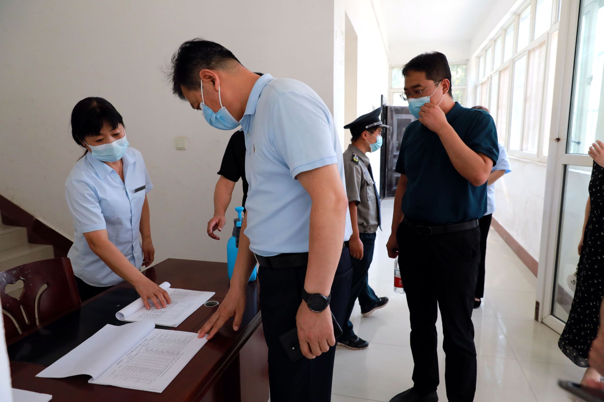 张迪一行重点检查了学校北门、校医院、第一学生餐厅、隔离室等地,对秋季开学前疫情防控落实情况、校门管控、后勤保障、医疗人员配备、隔离措施、消防安全等重点环节进行逐项检查,并提出具体要求。