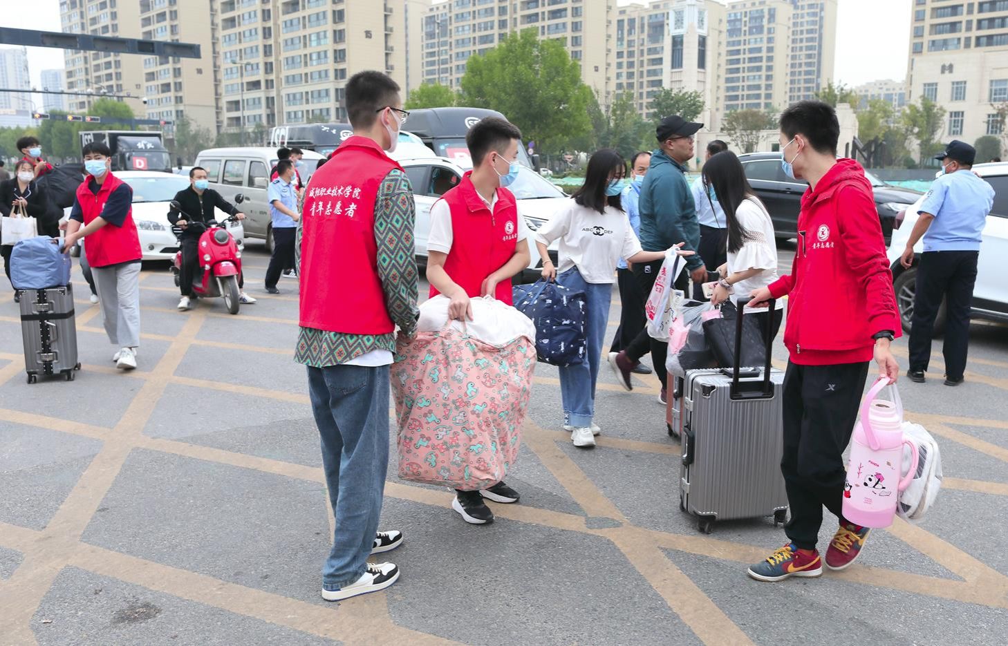 报到当天,来自各学院的330余名学生志愿者早早到达工作岗位。迎新接站、行李搬运、校园引导、注册报到、答疑解惑,“红马甲”们活跃在校园的每个角落。为方便外地新生入校,学院团委策划组织在西安北客站、西安火车站、咸阳西站、咸阳火车站、咸阳汽车站、地铁站设置6个接站工作点,共招募60余名接站志愿者,全天接站新生达650余人,助力同学们安全抵达学校。“我们几个志愿者接过家长的嘱托和新生的行囊,为新生转运行李、打包装车,5个小时已经服务了近千名新生,虽然很累,但看到他们新鲜的面孔和对新生活期待的眼神,就忘记了疲惫。”信息工程学院计算机应用技术2021级志愿者李毅鑫和同伴的双手勒出了深红色的痕迹。