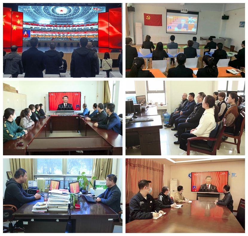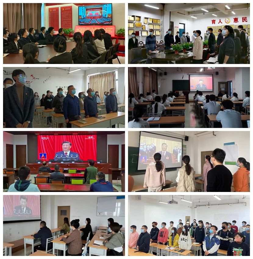 学院领导张迪、杨卫军、席尚君、张建刚、第五剑盈、王辉、杨新宇、吴旭锦及各二级学院、处室负责人,佩戴党徽,身着正装,集中收看党的二十大开幕会盛况,认真聆听习近平总书记的报告,就报告中提出的新思想、新观点进行探讨和交流,深刻领会报告的丰富内涵与重大意义。