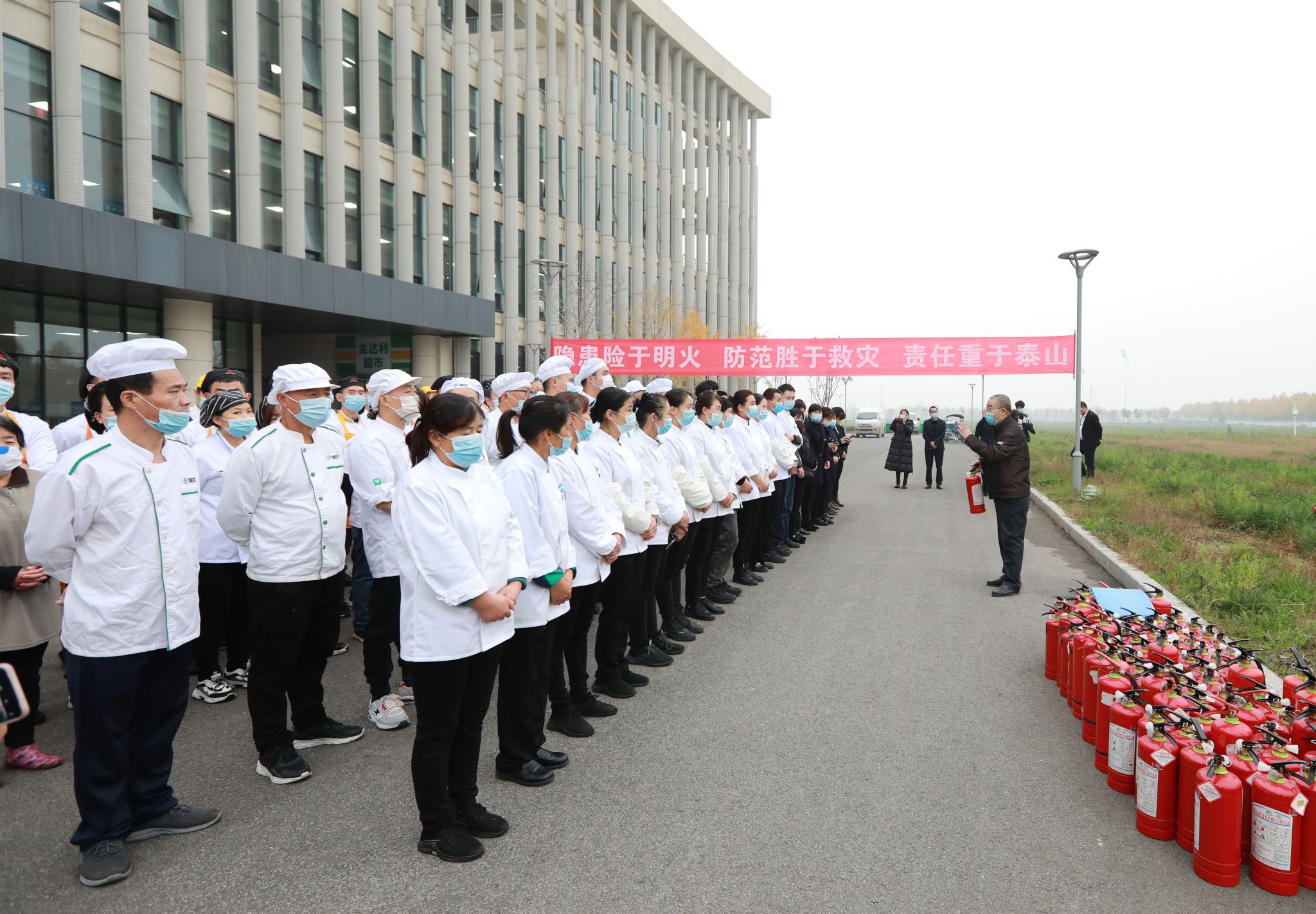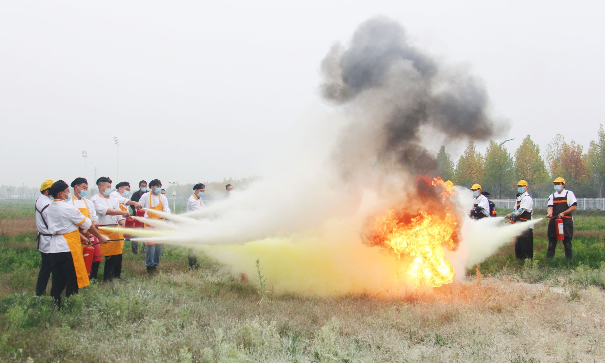 演练现场,学院消防工程师带领管理服务人员系统学习了消防安全展板知识,科普了火灾防范常识、扑灭火源的方法及注意事项,并现场演示灭火器的正确使用方法。