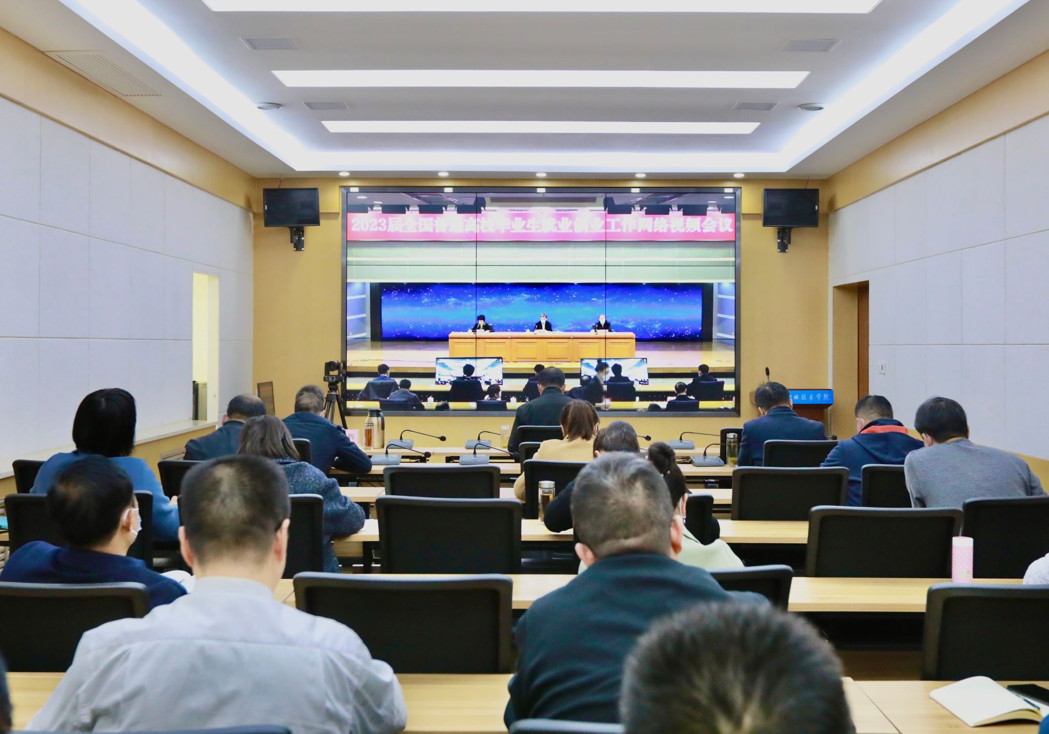 11月15日,教育部、人力资源和社会保障部联合组织召开2023届全国普通高校毕业生就业创业工作网络视频会议。学院院长杨卫军、副院长王辉,就业与校企合作处、保卫处、团委、创新创业学院及各二级学院负责人,相关工作人员共110余人分别在主会场和分会场参加视频会议,会议由教育部党组成员、副部长翁铁慧主持。