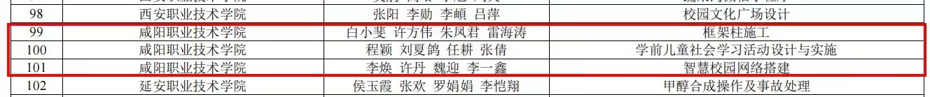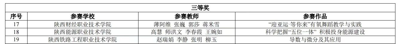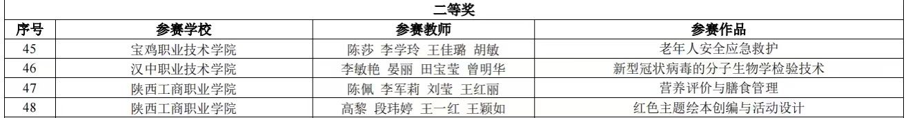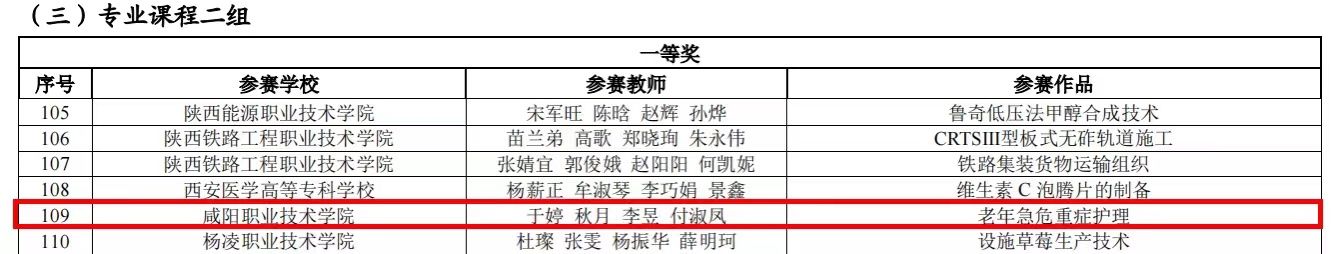 11月21日,陕西省教育厅下发《关于公布2022年陕西省职业院校教师教学能力比赛获奖名单的通知》(陕教函〔2022〕1251号),咸阳职院参赛作品荣获一等奖2项,二等奖2项,三等奖4项。学院荣获赛事优秀组织奖。