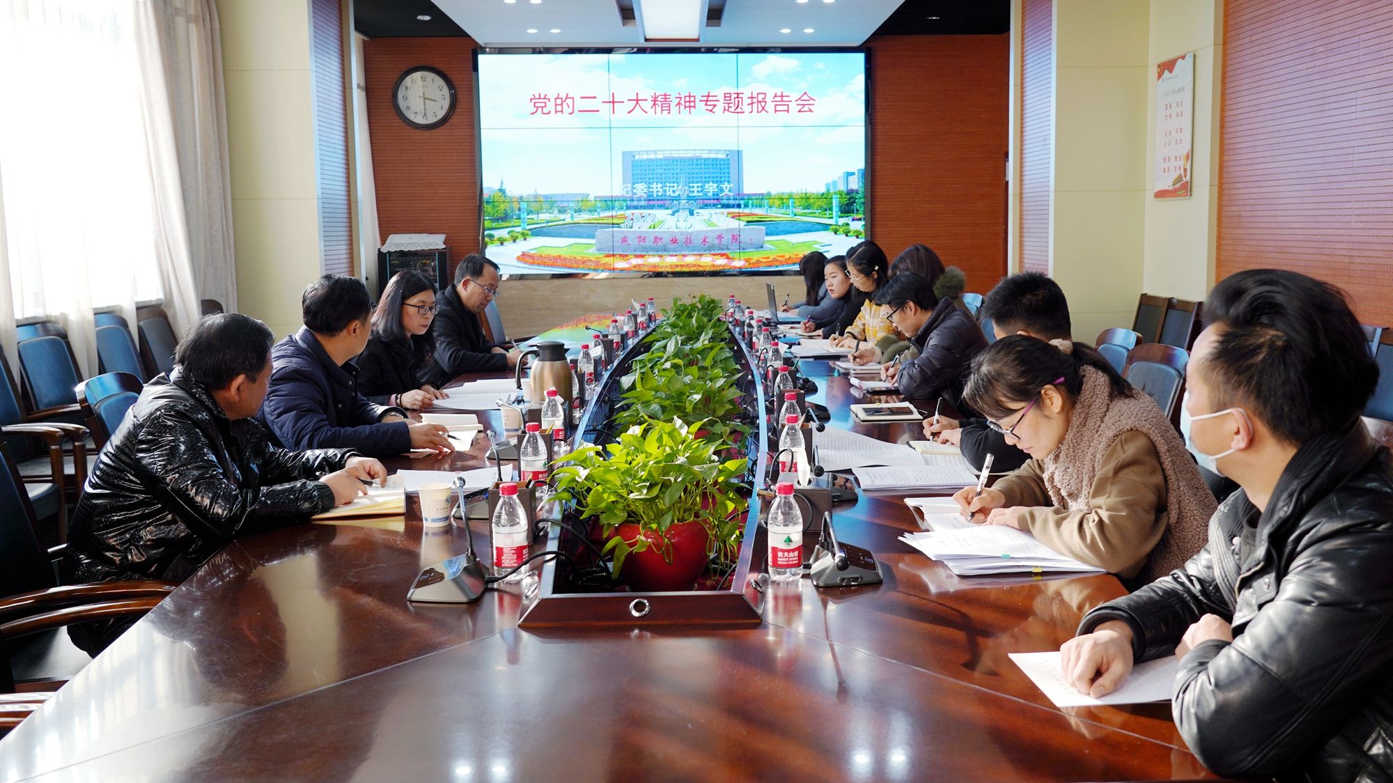 12月2日,咸阳职院纪委书记王宇文为纪委全体党员和汽车工程学院党员、教师代表宣讲党的二十大精神。