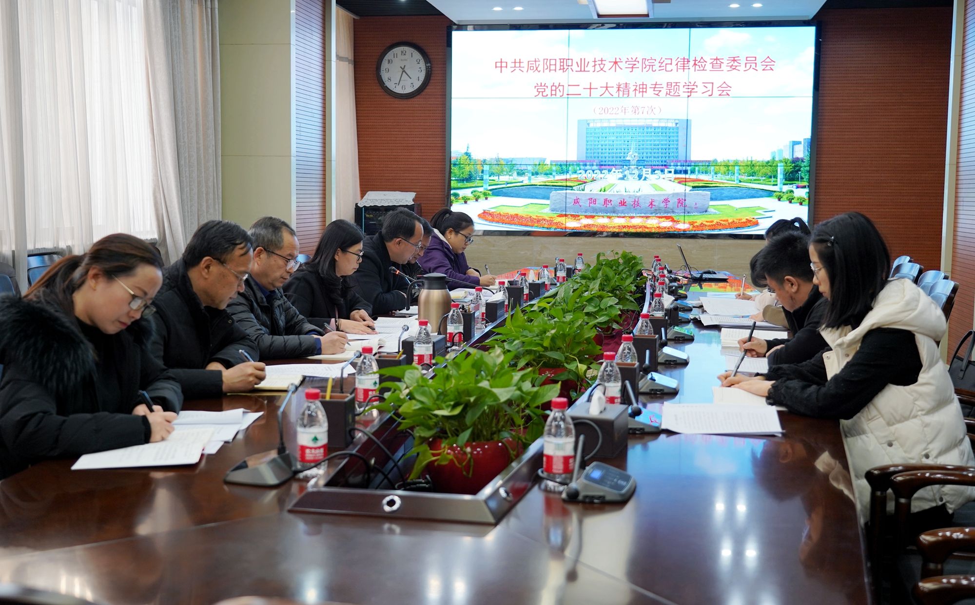 12月3日,中共咸阳职院纪律检查委员会召开理论学习中心组集体学习会专题学习党的二十大精神。纪委书记王宇文,副书记王晓辉,学院纪委委员及纪委全体党员参加。会议由纪委书记王宇文主持。