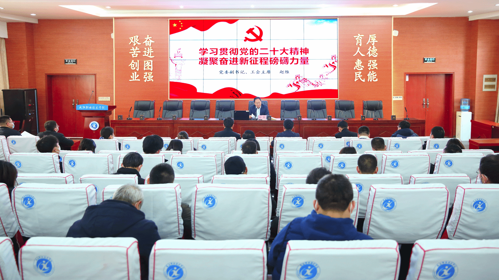 赵维强调,一要聚焦思想铸魂,在理论武装上求突破。坚持以党的二十大精神为指引,自觉做习近平新时代中国特色社会主义思想的坚定信仰者、积极传播者、模范实践者。二要聚焦主责主业,在履职担当上求突破。将党的二十大精神融入学院高质量发展全过程,扎实做好双高建设、综合协调、基本建设、工会建设等工作,力争再上新台阶。三要聚焦制度建设,在优化治理上求突破。加快推进学院治理体系和治理能力现代化,深入推进制度“废改立”工作,在干部职工中树立尊崇制度,执行制度的意识。四要聚焦管党治党,在夯实责任上求突破。深入学习贯彻新修订《中国共产党章程》,坚决拥护落实学院党委各项决策部署,严实作风、压实责任,持续构建风清气正的政治生态。