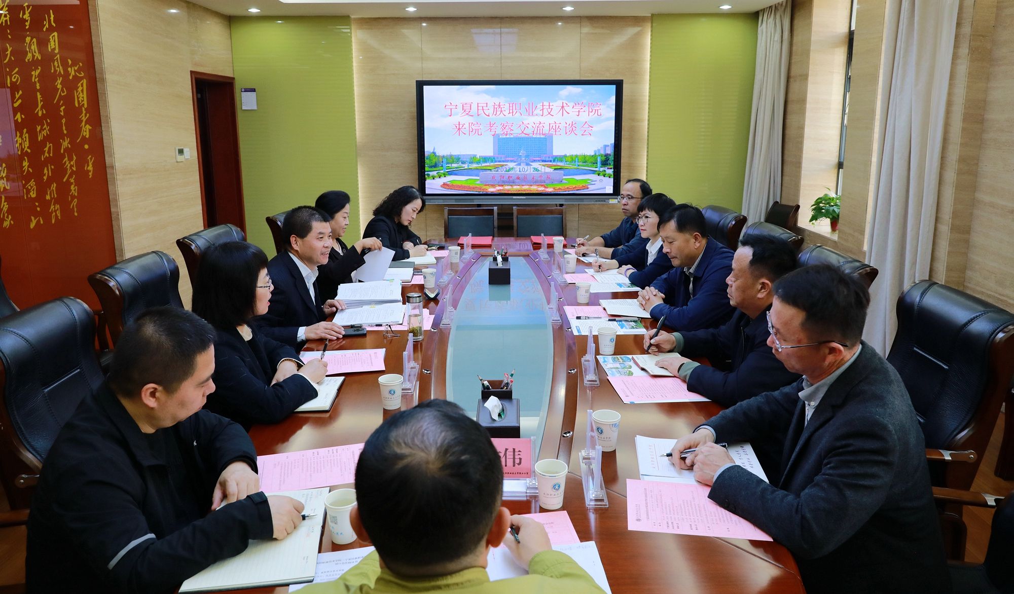 10月26日,宁夏民族职业技术学院党委副书记、院长焦玉柱一行6人到咸阳职院考察交流。学院党委副书记张建刚,学院办公室、教务处、仪祉农林学院、信息工程学院、小学教育学院负责人及相关人员参加座谈会。