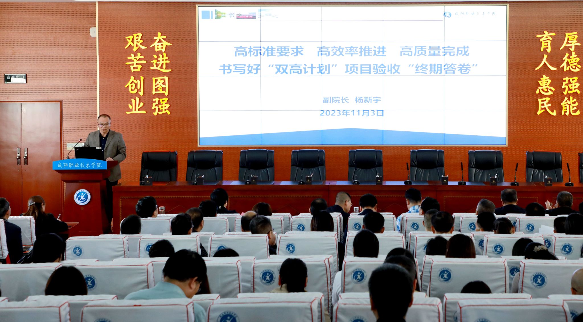 会上,杨新宇作了题为《高标准要求、高效率推进、高质量完成,书写好“双高计划”项目验收“终期答卷”》的专题报告,结合学院“双高计划”前期迎验工作推进情况,对下一阶段迎验工作进行了安排部署,聚焦建设资金归类整理、绩效数据采集填报、建设机制和举措凝练、典型案例撰写、标志性成果培育、绩效自评报告撰写等6项工作提出了要求、指明了具体路径方法,并对下一轮“双高计划” 申报提出了设想。