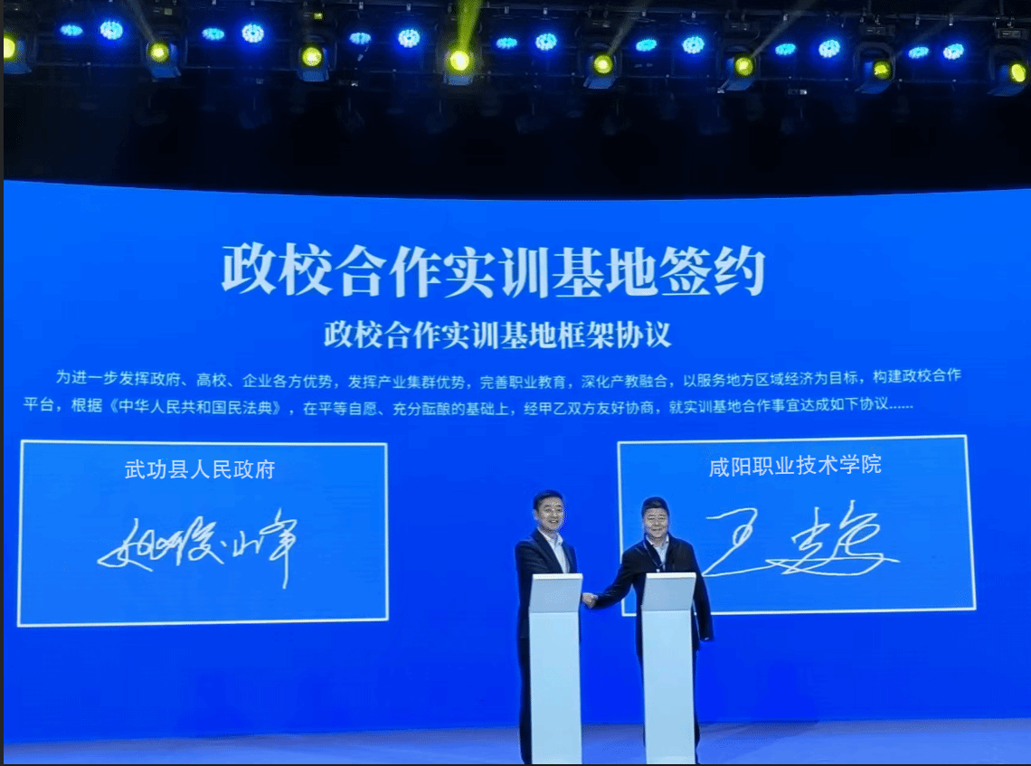 11月10日,2023年“双十一”武功电商节暨咸阳市电商促销月活动启动仪式在武功大剧院隆重举行,咸阳职院副院长王辉应邀出席并与武功县人民政府签署政校合作协议,标志着双方在职业教育领域的合作迈出了坚实的一步,将为武功县及周边地区培养更多高素质技能人才提供有力支持。