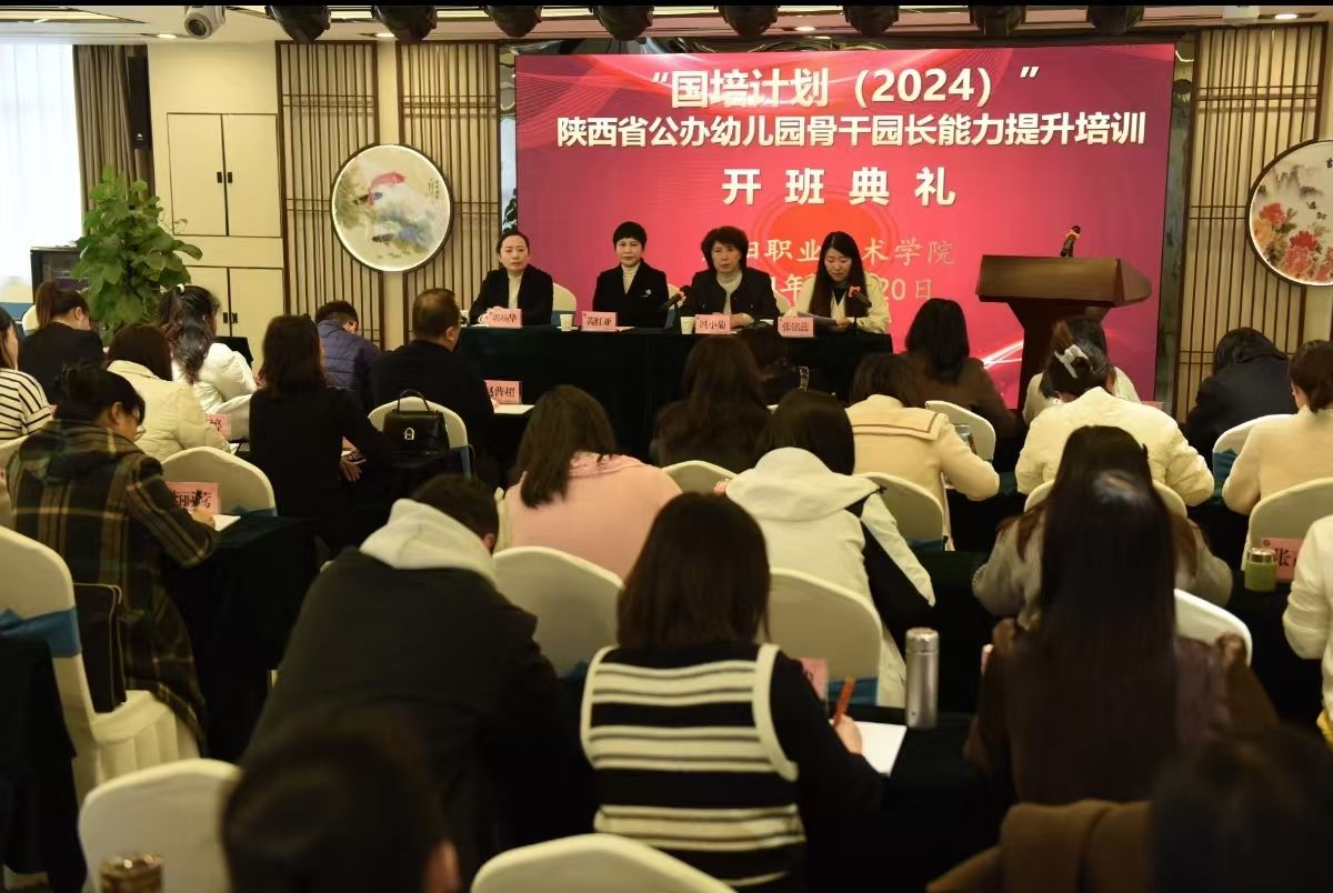 11月20日,“国培计划(2024)”陕西省公办幼儿园骨干园长能力提升培训开班典礼在咸阳市举行。咸阳职院副院长芮红亚,继续教育学院党政负责人、项目管理团队成员及全体参训学员参加开班典礼,仪式由继续教育学院院长冯小菊主持。