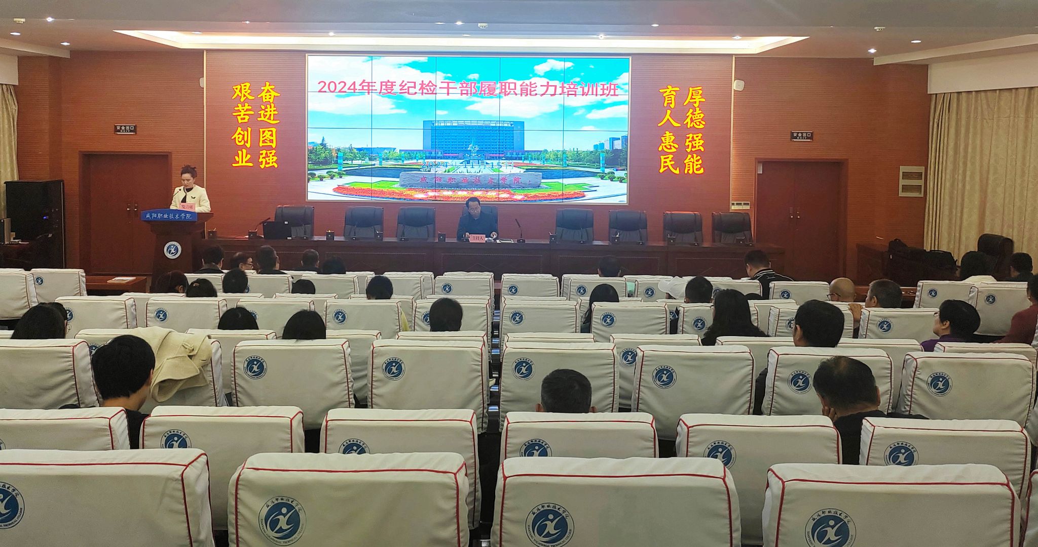 为进一步增强学院纪检干部队伍责任意识和履职能力,11月13日至16日,咸阳职院2024年度纪检干部履职能力培训班顺利举办,学院纪委书记王宇文出席开班式并讲话。学院纪委委员、纪委工作人员、各党组织纪检委员50余人参加培训。