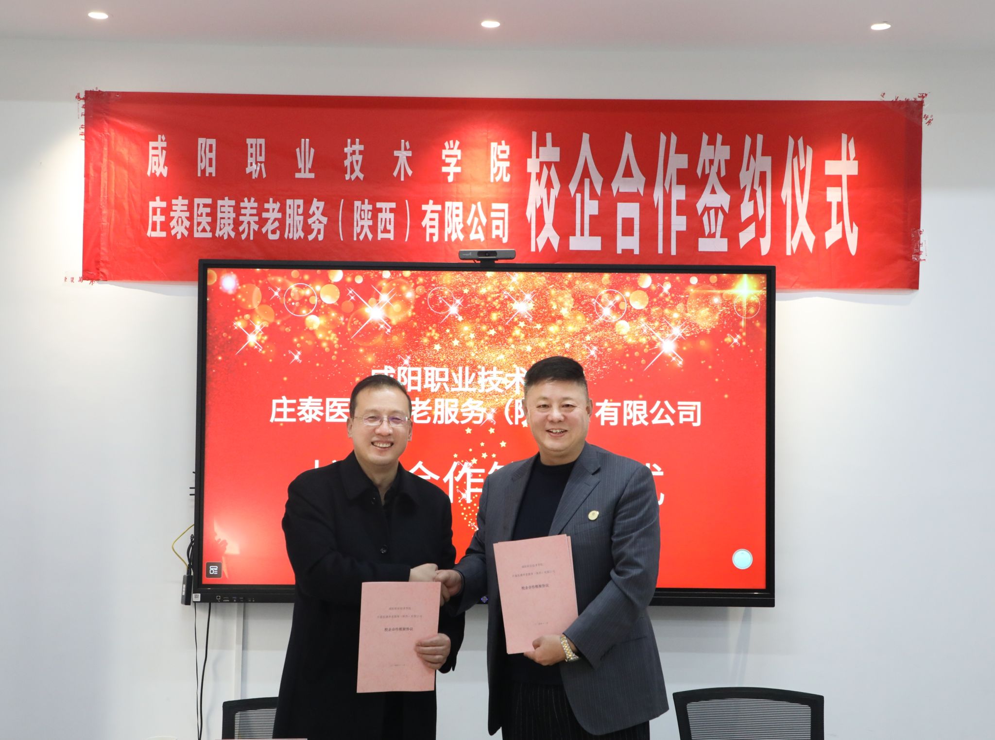 为深化校企合作交流,共同探索养老服务领域人才培养与产业发展的新模式。11月28日,咸阳职院与咸阳不老帮智慧养老公司、庄泰医康养老服务(陕西)有限公司举行校企合作签约仪式并开展调研交流活动,进一步推动学院在专业人才培养与行业实践融合方面的探索。咸阳职院院长杨卫军、副院长吴旭锦以及医学院负责人参加签约活动。