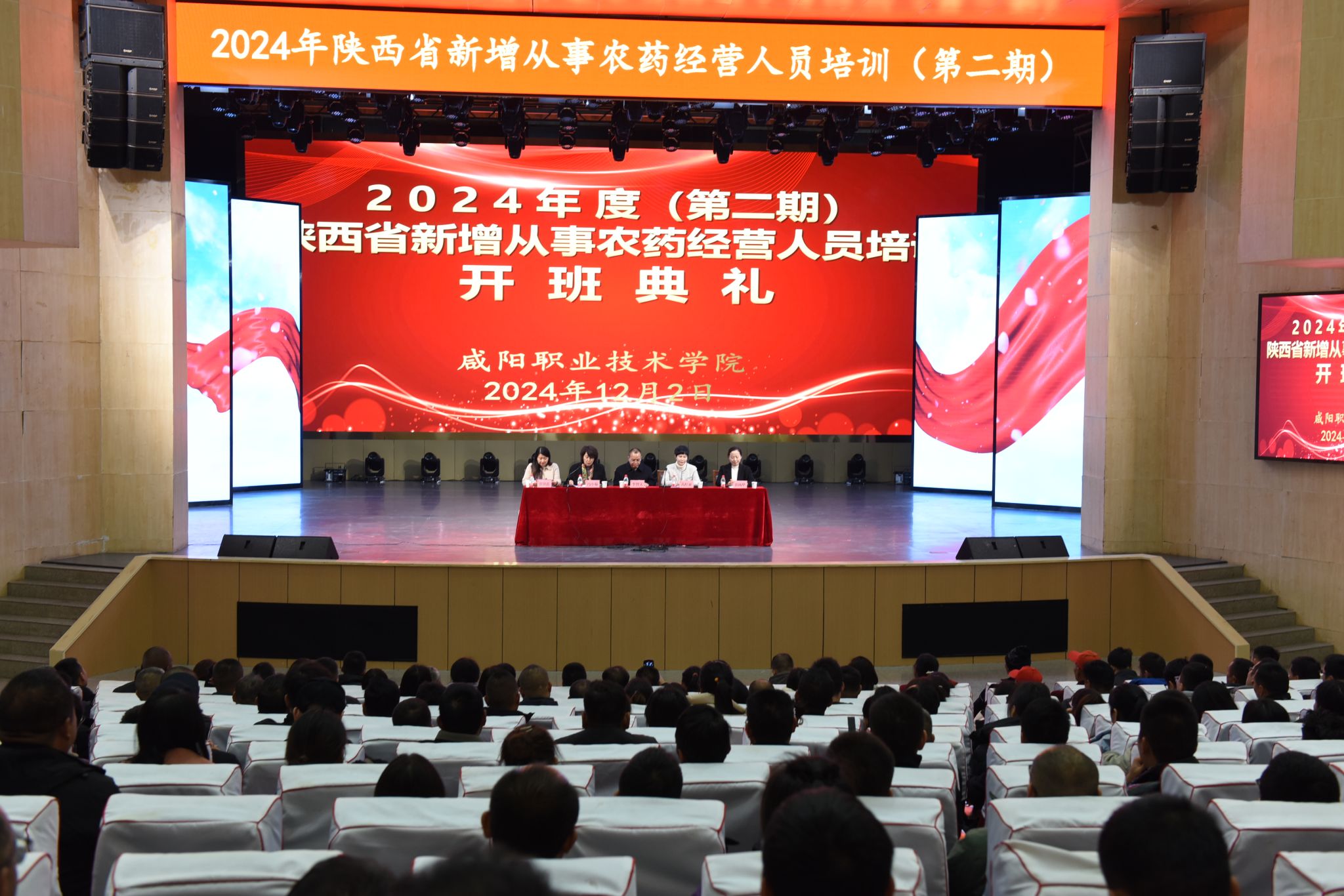 12月2日,2024年度陕西省第二期新增从事农药经营人员培训开班典礼在我院举行。学院副院长芮红亚,继续教育学院党政负责人、项目管理团队成员及全体参训学员参加开班典礼,陕西省农业检验检测中心主任李智文应邀出席,仪式由继续教育学院院长冯小菊主持。