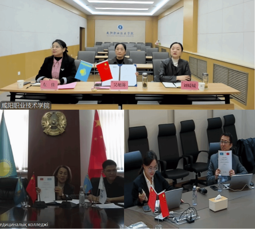 10月22日,咸阳职业技术学院与哈萨克斯坦高等医学院、中智国际教育科技(北京)有限公司线上签约仪式在院务楼208会议室举行。咸阳职院副院长吴旭锦、医学院、国际交流合作处负责人,哈萨克斯坦高等医学院校长阿莱达洛娃·艾娜·坎图尔芙娜、副校长阿塔姆库洛夫·拜季别克·库南巴尤利、艾特巴耶娃·阿克波雷·瑟利巴约芙娜,中智国际教育科技(北京)有限公司代表等参加签约仪式。