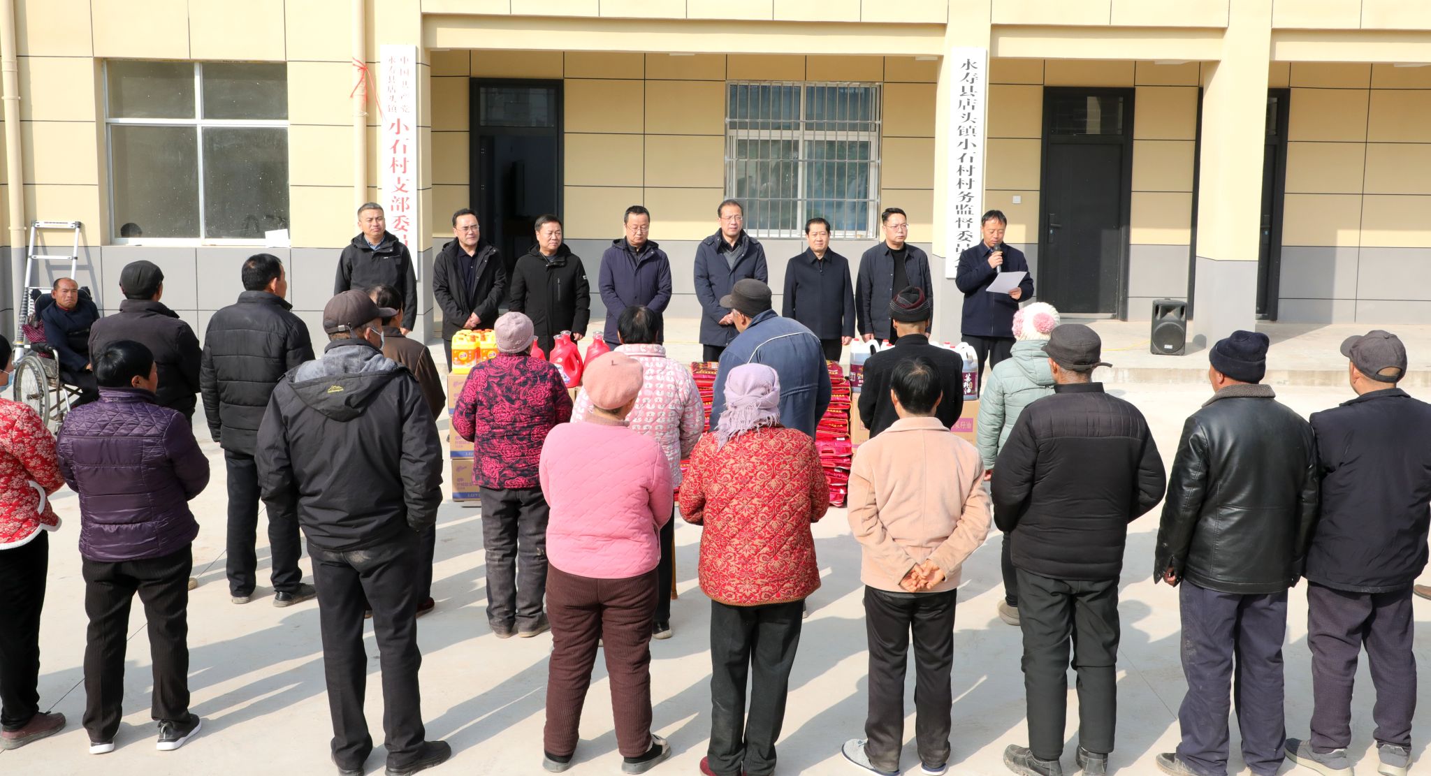 在店头镇小石村召开的座谈会上,杨卫军认真听取驻村第一书记工作汇报和村“两委”介绍,对镇村两级给予学院帮扶工作的大力支持表示感谢,对驻村工作队一年来在党建引领、村委会改造、助学帮扶、产业帮扶等方面的扎实工作和积极成效予以肯定。他强调,要继续发挥学院资源优势,聚焦基层党建、乡村治理、特色产业培育等重点领域,久久为功、善作善成,携手绘就乡村振兴新画卷。店头镇党委书记赵航飞、镇长秦立特等参加座谈。