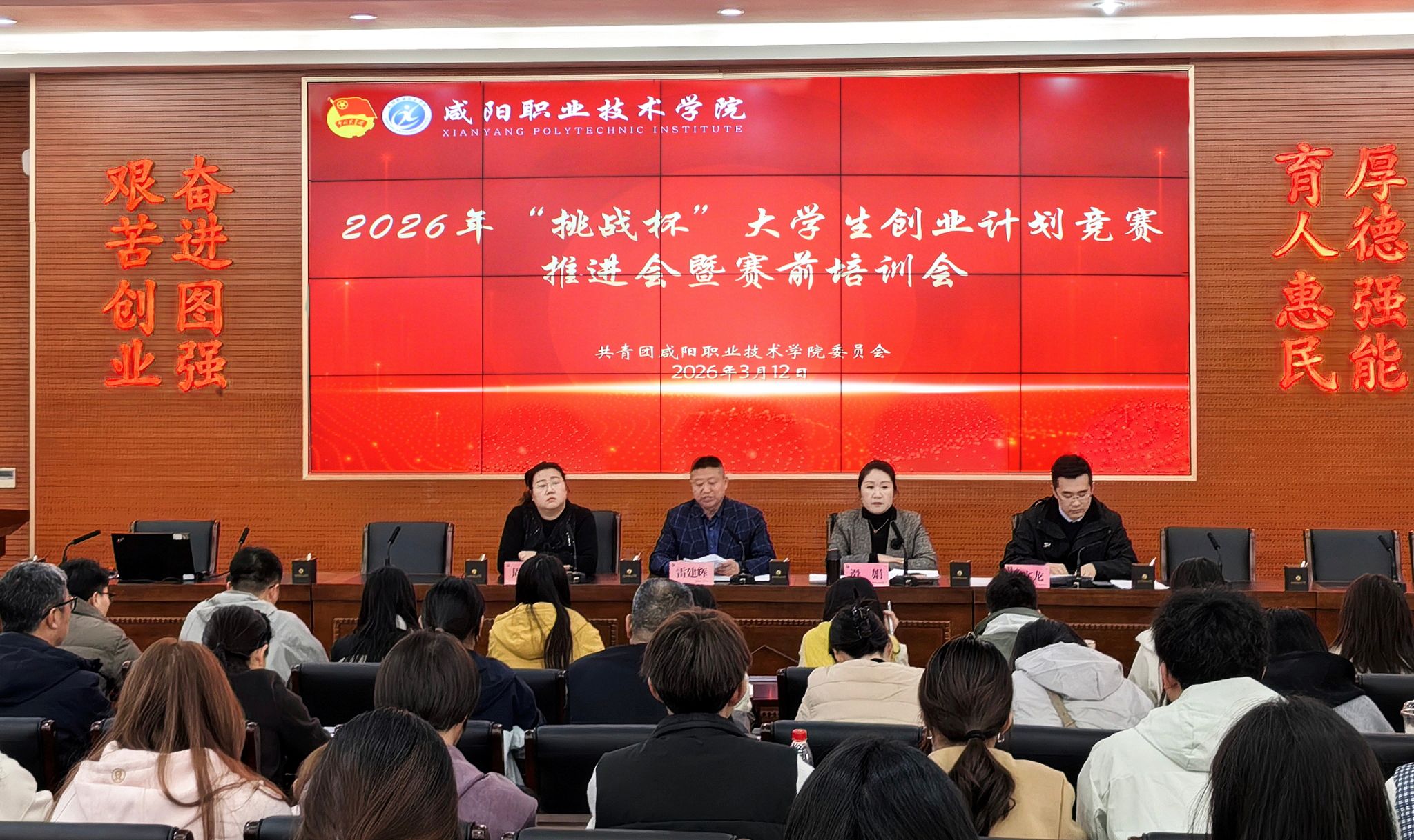 3月12日,咸阳职院召开2026年“挑战杯”大学生创业计划竞赛推进会暨赛前培训会,副院长雷建辉,各二级学院团总支书记、意向指导教师、学生代表及团委全体工作人员参加,会议由院团委书记主持。