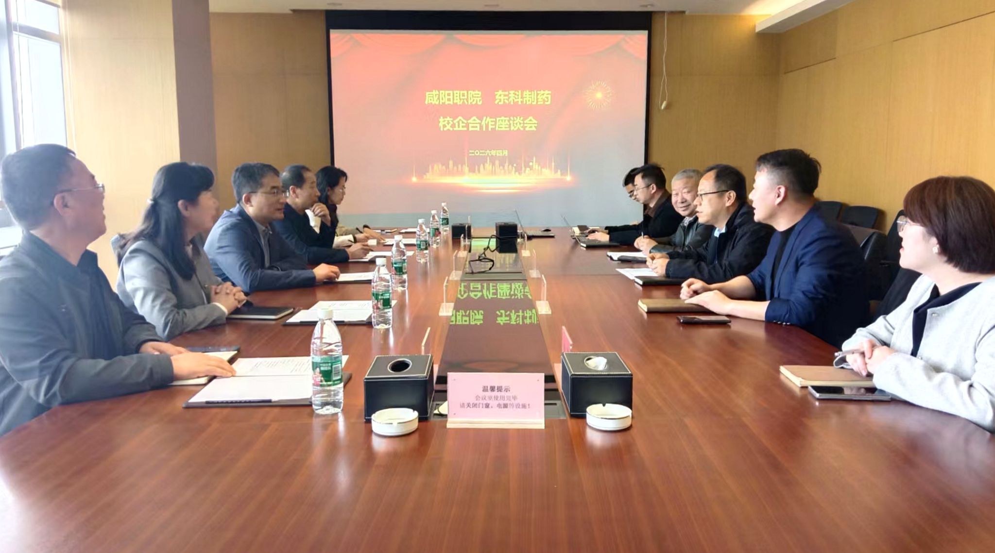 参观结束后,校企双方召开座谈交流会。宋飞科介绍了咸阳职院的办学特色、专业设置以及人才培养成果。他指出,学院始终秉持“产教融合、校企合作”的办学路径,机电学院所开设的机电一体化、电气自动化等专业,与东科制药的设备运维、自动化产线管理等岗位高度适配,双方具备广阔的合作空间。