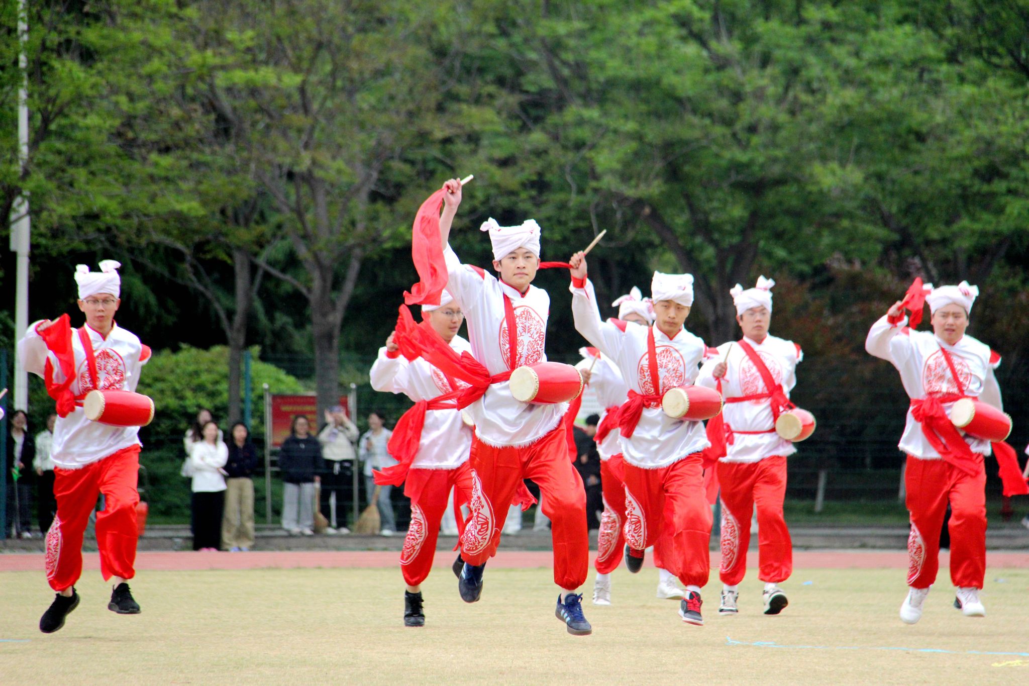 开幕式团体操表演将现场气氛推向顶峰。各学院精心编排的节目轮番登场,科技元素与传统文化的交融成为最大亮点。信息工程学院团体操表演融入了机器人和机器狗的协同演绎,科技感十足的“数字伙伴”与学子们灵动舞姿相映成趣,展现了咸职学子独有的温度与力量。机电学院团体操和着《精忠报国》的激昂旋律,传统京剧国粹与青春活力碰撞,展现中华优秀传统文化的时代风采。师范学院的“欢快小马”方阵与“奔腾骏马”方阵相映成趣,小马灵动可爱,骏马气势如虹,象征着教育事业的薪火相传与蓬勃发展。体育学院与咸阳市太极拳协会合作呈现太极扇展演,扇影灵动间尽显中华传统体育魅力,彰显校企同心、健康同行的时代风采。化工学院团体操队伍如精密仪器般井然有序,建筑工程学院啦啦操用动感舞姿诠释建筑韵律,财经学院团体操以智慧与激情的交响奏响逐梦前行的最美宣言……一个个精彩节目轮番上演,赢得现场师生阵阵喝彩。